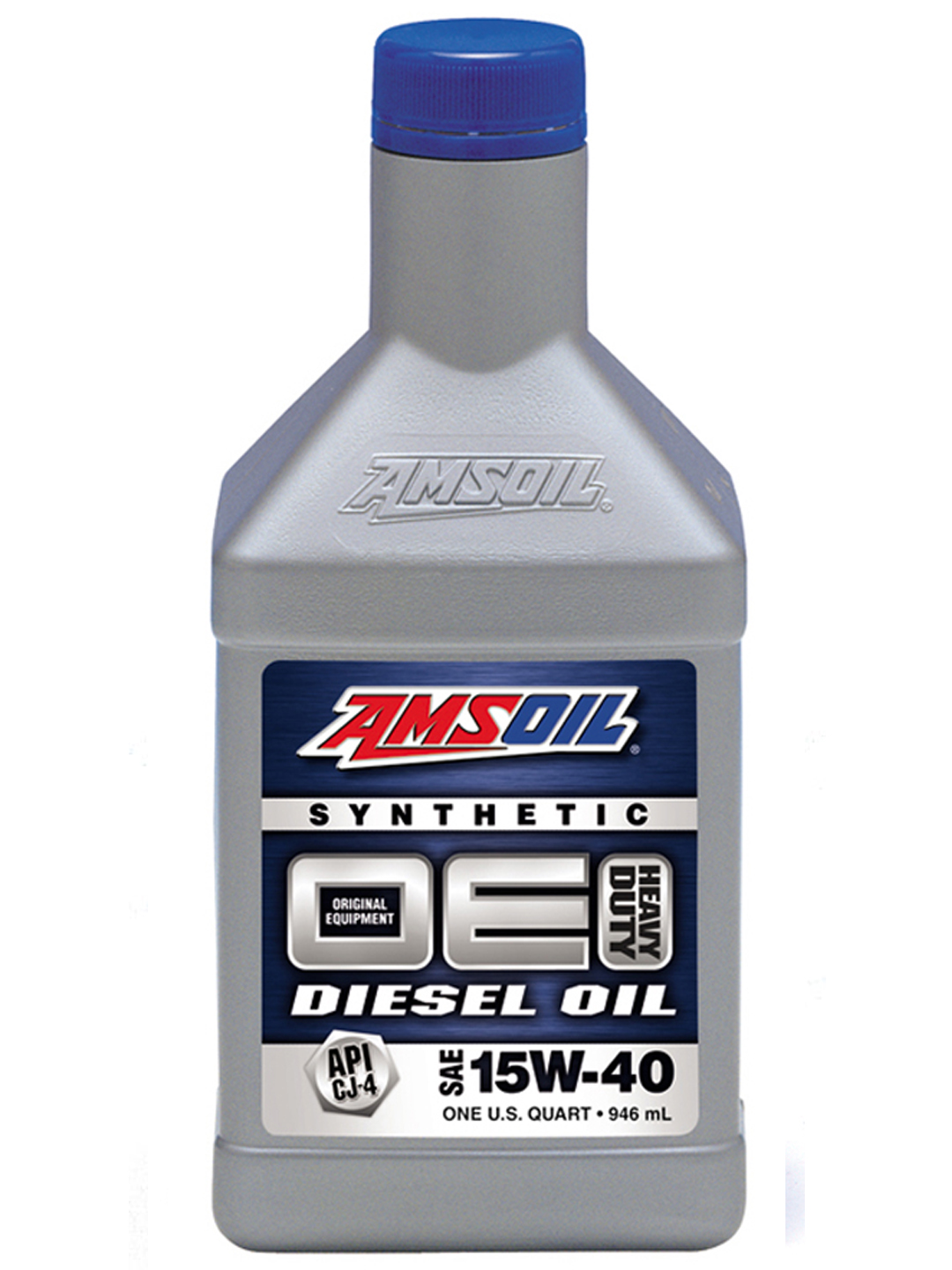 AMSOIL OE 15W-40 Synthetic Diesel Oil provides excellent protection and performance in both on- and off-road diesel engines for the original equipment manufacturer’s recommended drain interval. It meets API CJ-4 specifications and is suitable for both modern and older diesel applications. AMSOIL OE 15W-40 Synthetic Diesel Oil exceeds the higher performance demands of modern engines and withstands the stress of heat, soot and acids to help prevent deposits, wear and corrosion.